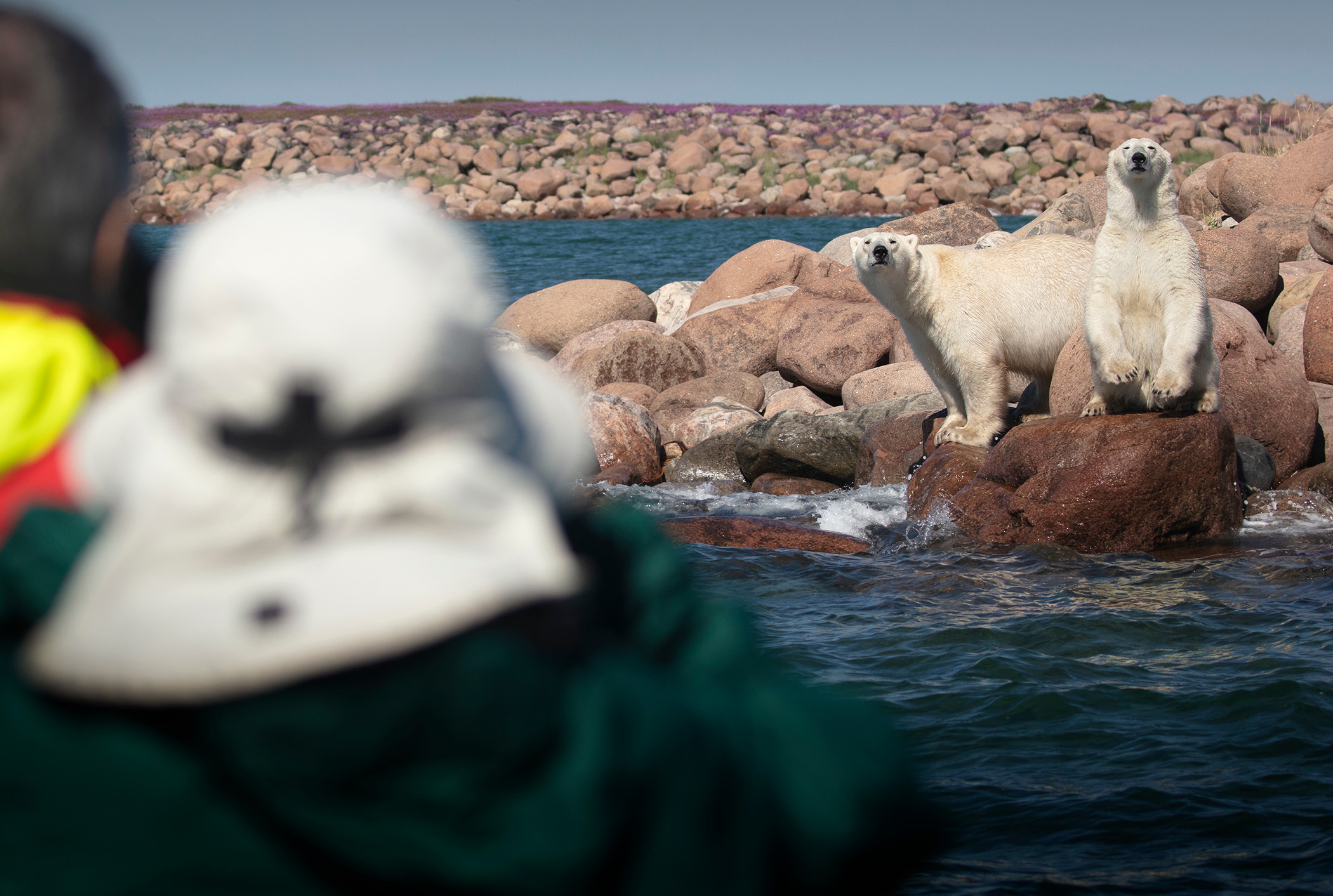 Hoje você embarca no Matonabee, o novo navio do lodge e o único da região com janelas subaquáticas. Durante o dia inteiro, a navegação segue pela costa da Baía de Hudson e estuários vizinhos, território frequente dos ursos-polares.
