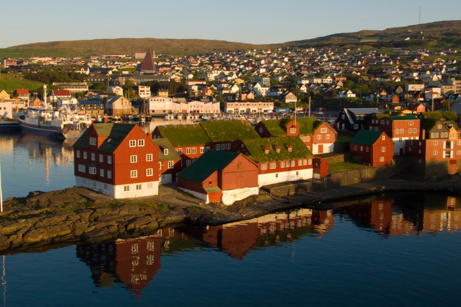 Ao desembarcar no remoto aeroporto de Vágar, no coração do Atlântico Norte, você será recebido para o traslado até Tórshavn, a charmosa capital das Ilhas Faroé. Se o clima permitir, o caminho até o hotel poderá seguir por uma rota alternativa nas montanhas, revelando desde o primeiro momento a beleza dramática da paisagem faroesa — fiordes profundos, pastos ondulados e vilarejos pontuados por casas com telhados de grama.